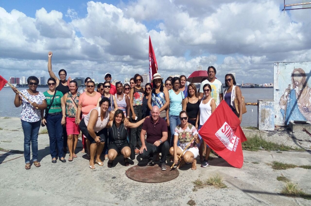 | Professores da Barra durante mobilização (Fotos: Divulgação/Sintese) |