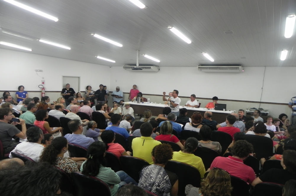 | Categoria está reunida no auditório da Adufs (Foto: Portal Infonet) |