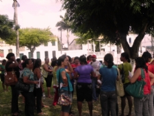 Os professores do município de São Cristóvão paralisaram as atividades por dois dias. Na manhã desta quinta-feira, 7, a categoria fez um ato na Praça Matriz, em frente à Secretaria Municipal de Educação, reivindicando entre outros pontos, o pagamento retroativo do Piso Salarial Nacional Profissional (PSPN), de 2009; o pagamento das férias de julho, reformas nas escolas e salários em dia. Ato foi realizado em frente à Secretaria de Educação (Fotos: Portal Infonet)