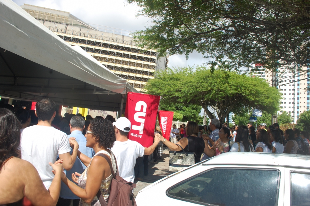 Segurança. Essa foi a palavra de ordem durante o ato realizado pelo Sindicato dos Trabalhadores em Educação do Estado de Sergipe (Sintese), na manhã desta quinta-feira, 13 na frente do Palácio dos Despachos. Professores e estudantes protestaram contra a violência nas escolas das redes estadual e municipal de ensino, especialmente por conta do episódio em que o professor da Escola Olga Barreto [no conjunto Eduardo Gomes] Carlos Cristian Almeida Gomes, 23, baleado por um aluno na última terça-feira, 12.