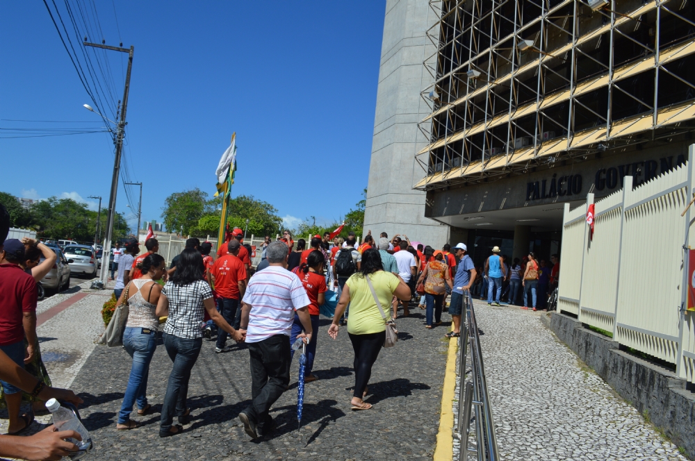 Professores da rede estadual de ensino em greve desde o último dia 18 e acampados no Palácio de Despachos há 12 dias, realizaram uma passeata no final da manhã desta terça-feira, 9, até a porta da Secretaria de Estado da Educação (SEED). No retorno, eles voltaram a ocupar o Palácio Governador Augusto Franco, juntamente com estudantes da capital e do interior que decidiram apoiar o movimento.