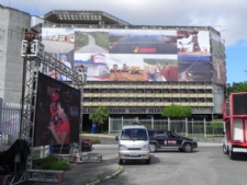 | Um telão foi montado em frente ao palácio |