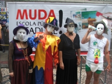 João Pessoa, no Centro. A categoria apresentou uma esquete teatral caricaturando figuras da política local, e realizou uma enquete entre os presentes. Duas perguntas foram feitas aos professores: ‘Houve mudança na educação dos sergipanos no governo Déda?’ e ‘Que fatores podem contribuir na educação dos sergipanos para melhorar a escola pública?’.