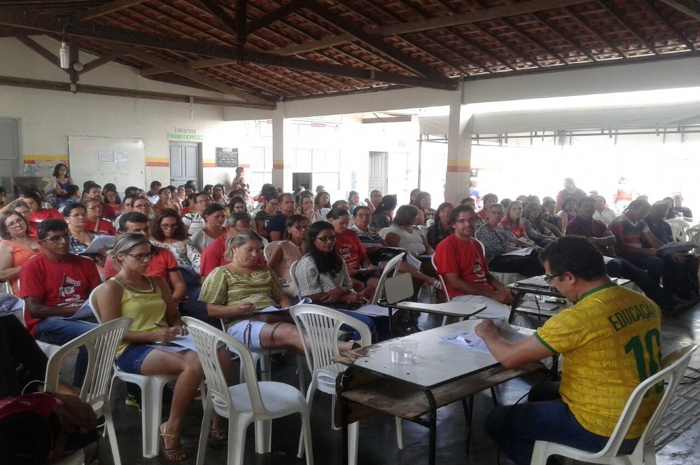 | Professores reunidos para discutir alterações (Foto enviada pelo Sintese) |
