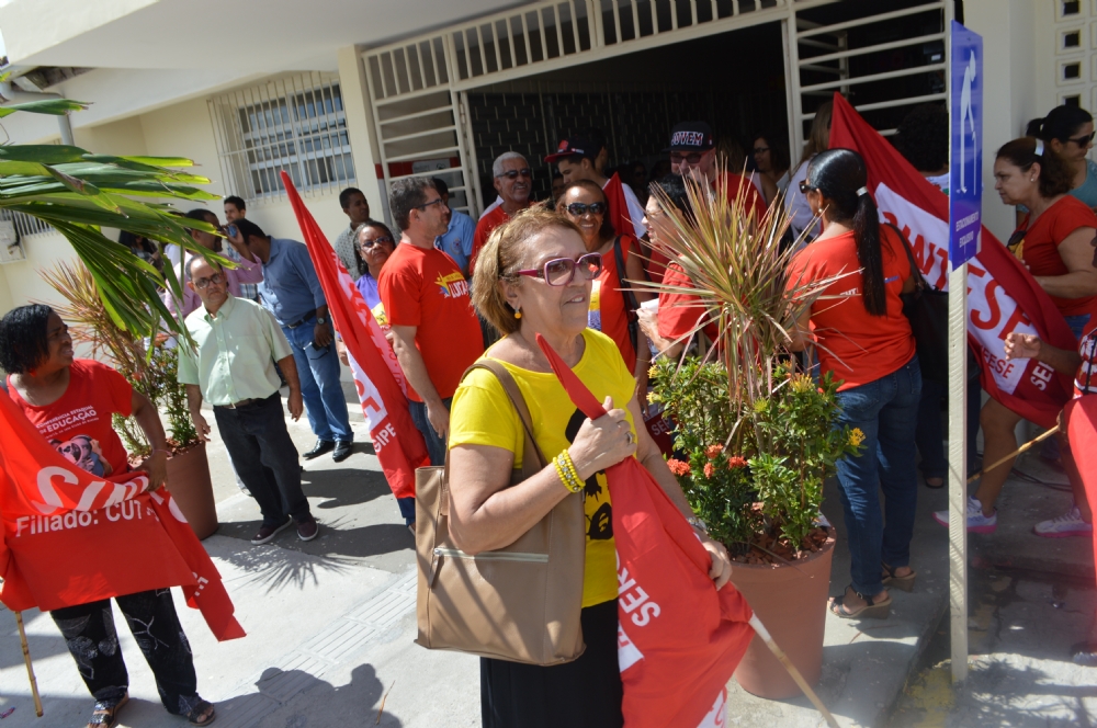 Paralisados desde a última quinta-feira, 9, os professores de rede pública estiveram na manhã desta sexta-feira, 10, na reforma e ampliação da Escola Estadual Desembargador João Bosco de Andrade Lima, localizada na Avenida Centenário, no Conjunto Bugio, em Aracaju. Durante o ato, os professores pressionaram o governador do Estado que recebeu a classe. De acordo com o diretor do Sindicato dos Trabalhadores em Educação do Estado de Sergipe (Sintese), Roberto Silva, a luta dos professores é pelo pagamento do piso na carreira.