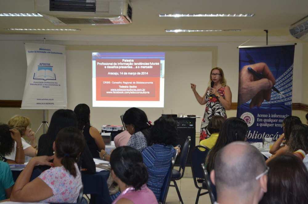 Na ocasião, a palestrante Todeska Badke, que veio do Rio Grande do Sul, falou sobre o tema “Profissional da Informação: Tendências futuras e desafios presentes … e o mundo”.