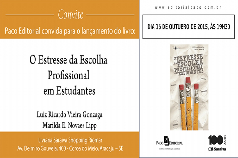 Na noite desta sexta-feira, 16, às 19h30, o psicólogo Luiz Ricardo Vieira Gonzaga lança o livro “O Estresse da Escolha Profissional em Estudantes”. O lançamento será realizado na livraria Saraiva no Shopping Riomar, bairro Coroa do Meio.