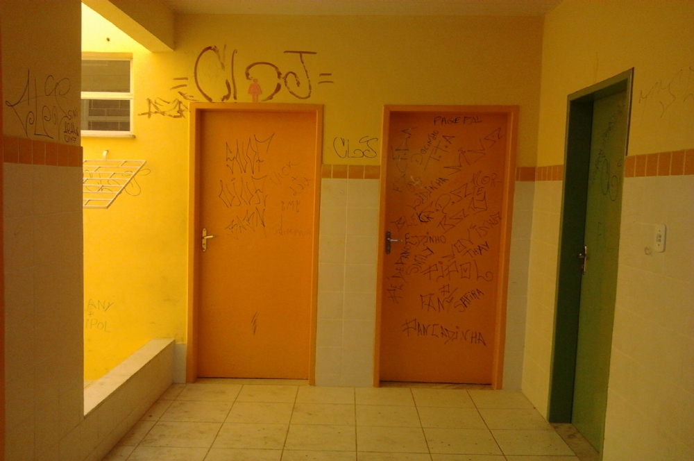 | Portas pichadas e sem trancas (Foto:Portal Infonet) |