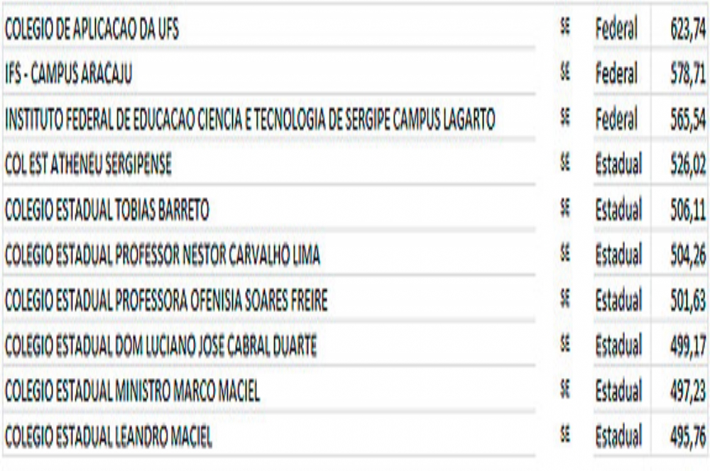 Confira a ordem das escolas públicas e privadas de Sergipe e suas médias