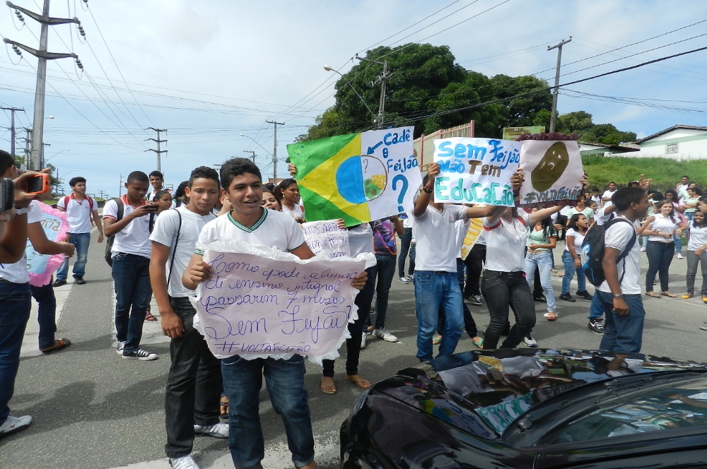 Nos gritos de protestos, os estudantes pediam atenção do Governo para com a alimentação na escola e diziam estar anêmicos. “Já existe registro aqui de alunos que estão anêmicos pela falta do feijão e de legumes. Não adiantam dizer que é mentira porque a gente pode provar. Além disso, a alimentação da escola é importante porque a gente fica aqui o dia inteiro e tem pessoas que não tem condição de comprar lanche e almoçar fora”, reclamou uma das alunas.
