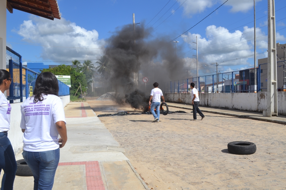 | Servidores atearam fogo em pneus (Foto: Portal Infonet) |