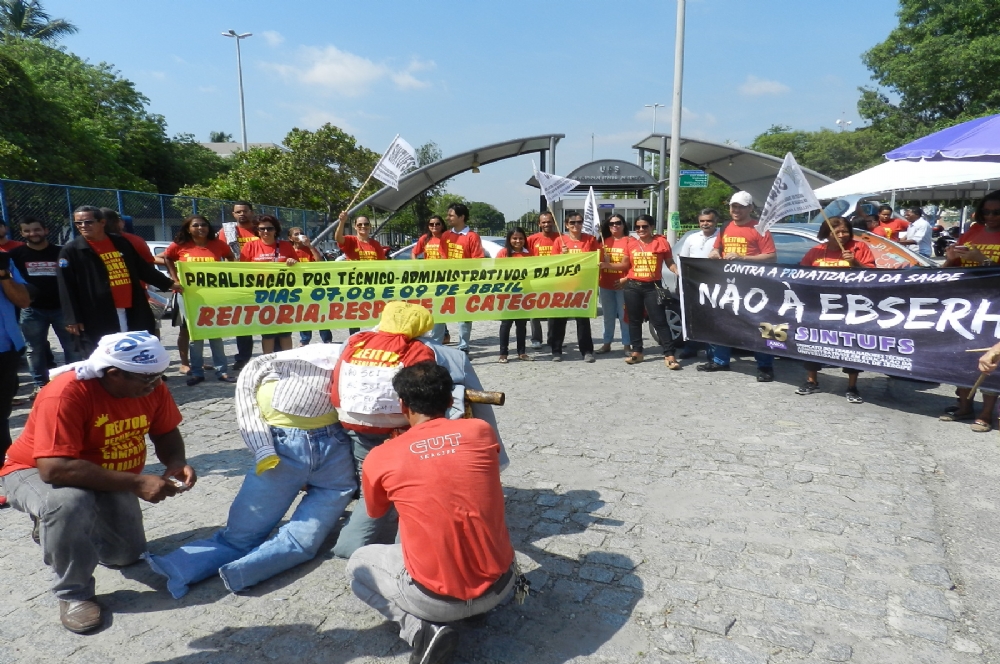 Como forma de protesto, os servidores se concentraram na porta da universidade para impedir o acesso dos veículos nas instalações da instituição de ensino. Na oportunidade, foi realizada a queima simbólica do reitor e vice-reitor da instituição.