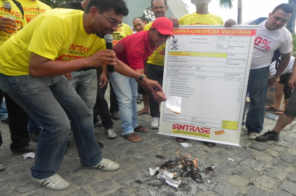 Em forma de protesto, muitos servidores rasgaram e queimaram os contracheques como um ato simbólico em repúdio aos salários recebidos pela categoria.