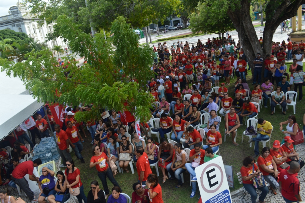 Representantes de vários sindicatos participaram na manhã desta quarta-feira, 17 de um ato na Praça Fausto Cardoso, em apoio à greve dos professores da rede estadual de ensino, iniciada no último dia 18 de maio.