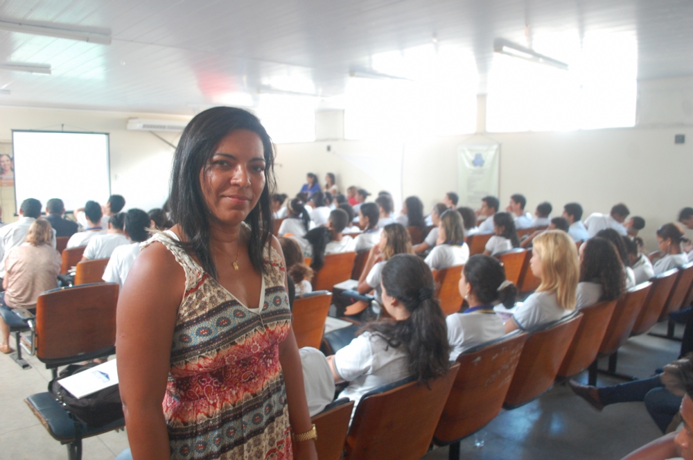 Durante a palestra para estudantes do 9º ano do Ensino Fundamental ao 2º ano do Ensino Médio, a professora Patrícia Verônica destacou a importância de se ter foco.