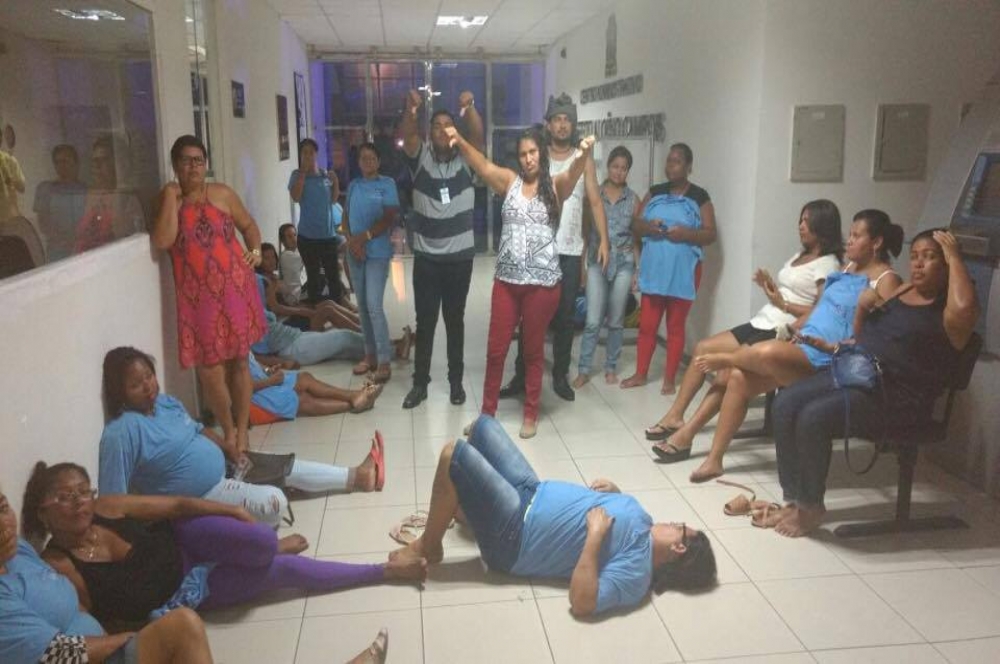 Os terceirizados, que atuam em escolas e creches do município, continuam dentro da sede da Prefeitura, em protesto contra os atrasos de três meses nos salários. Na manhã desta quarta-feira, 9, uma comissão da categoria ficou do lado de fora para se somar ao ato. Segundo os trabalhadores, o débito da Prefeitura com empresa terceirizada seria o motivo dos atrasos, já que a Prefeitura não estaria realizando os repasses há cinco meses.