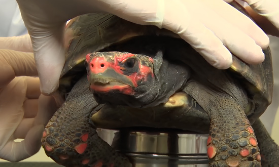 De acordo com o médico veterinário João Victor, o animal sofreu queimaduras de segundo grau que provocaram a perda de placas córneas e ósseas da carapaça, deixando tecidos internos expostos.