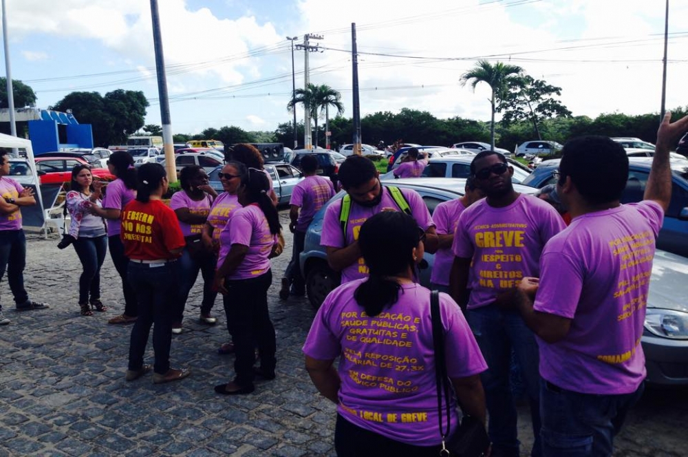 | Sindicalistas fizeram uma panfletagem em frente à Universidade (Foto: Portal Infonet) |