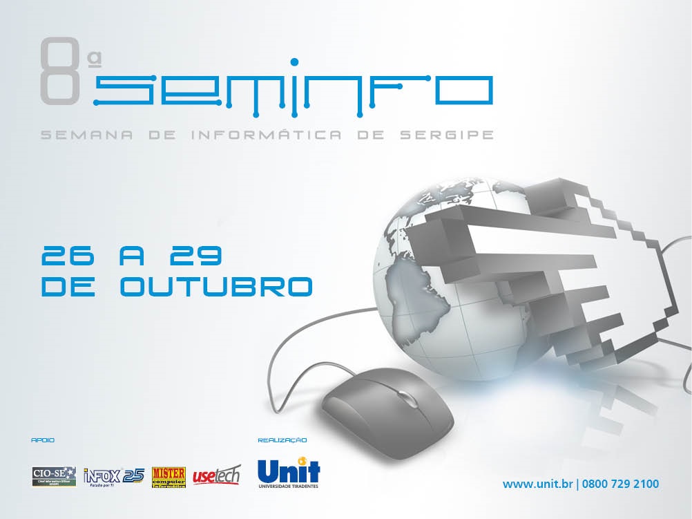 Terá início na próxima quarta-feira, dia 26, a 8ª Semana de Informática de Sergipe (Seminfo). O evento é vinculado a Coordenação dos Cursos de Informática da Universidade Tiradentes e segue até o dia 29 desse mês.