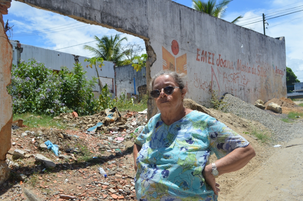 Moradora do Bairro Veneza há 32 anos, a dona de casa Júlia Bispo Santos também reclama do descaso do poder público com a situação de abandono do prédio onde já funcionou uma escola da educação infantil, localizado bem ao lado de sua casa.