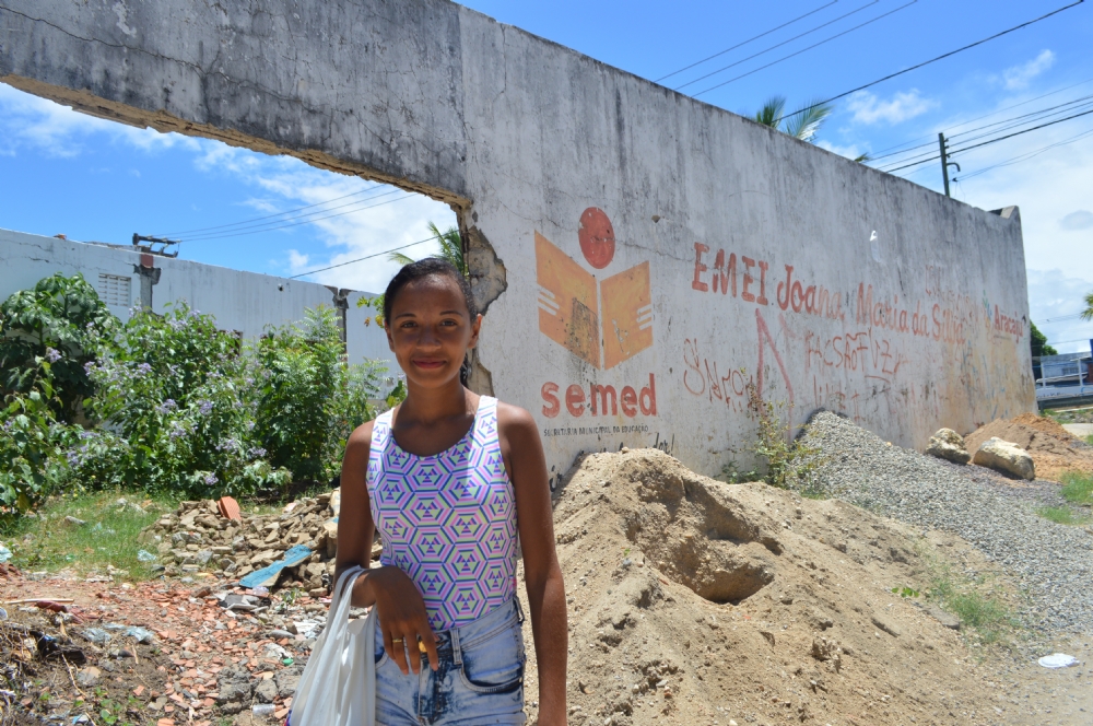 Laísa Campos informa que a EMEI Joana Maria da Silva foi sua primeira escola, onde ela estudou durante muitos anos. “Ver a escola desse jeito é muito triste, era muito bom estudar aí. É uma pena que esteja assim, abandonada e cheia de mato. A minha esperança é que reformem e reabram a escola”, diz a estudante.