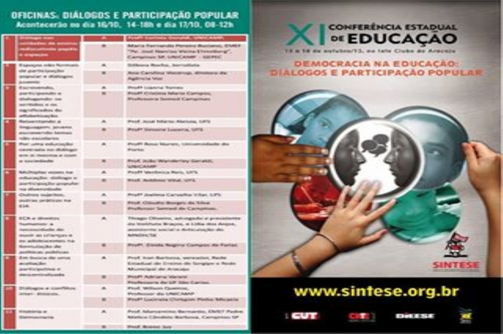 De 15 a 18 de outubro o Sintese realiza a XI Conferência Estadual dos Trabalhadores em Educação no Iate Clube de Aracaju com o tema "Democracia na Educação: Diálogos e Participação Popular" com palestras e oficinas. Confira a programação.