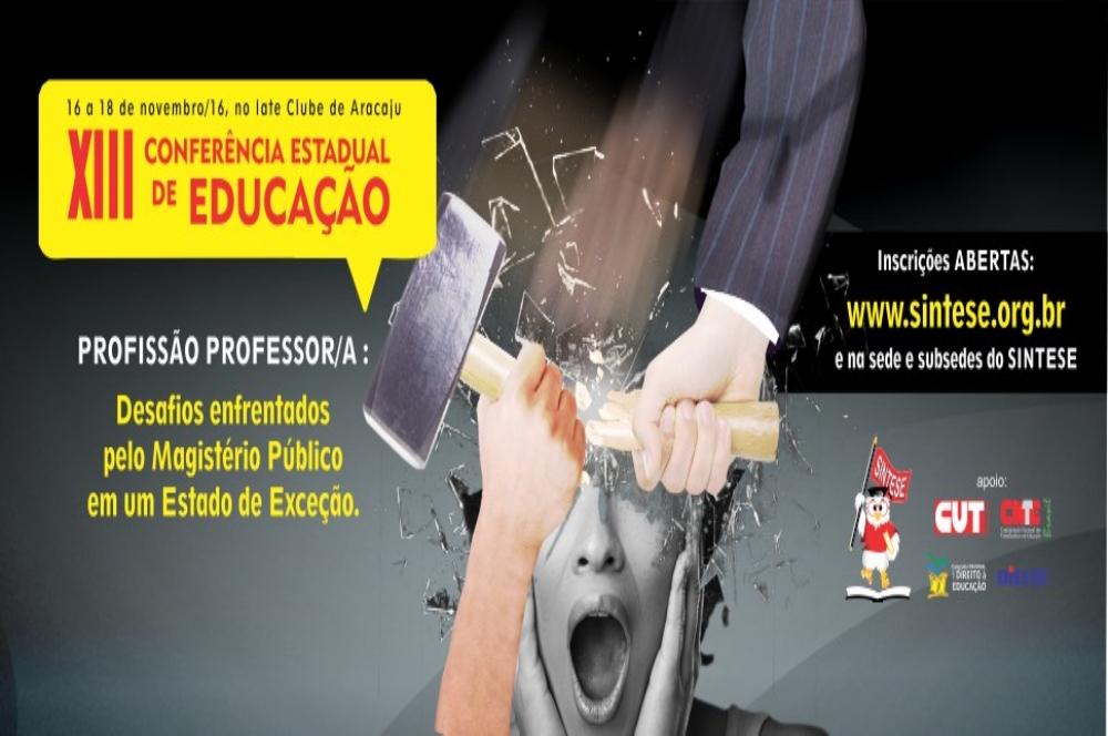 De 16 a 18 de novembro educadores e educadoras, além de estudantes de licenciatura irão refletir e debater sobre os desafios a serem suplantados pelo magistério na atual situação política, econômica e social. Na XIII Conferência Estadual de Educação. O evento será realizado no Iate Clube de Aracaju.