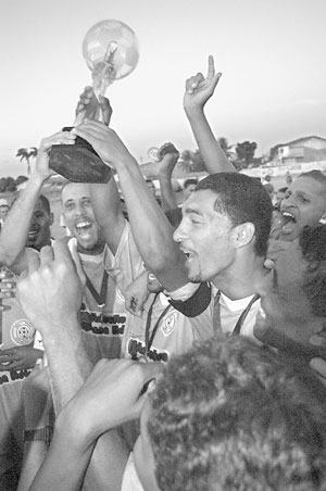| Jogadores comemoram a conquista do título |