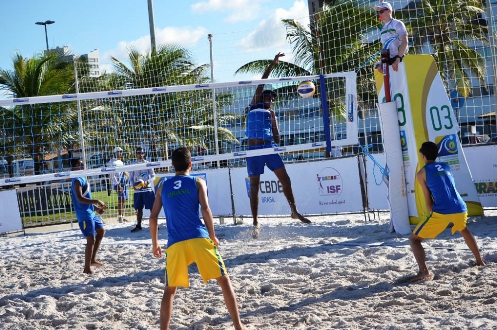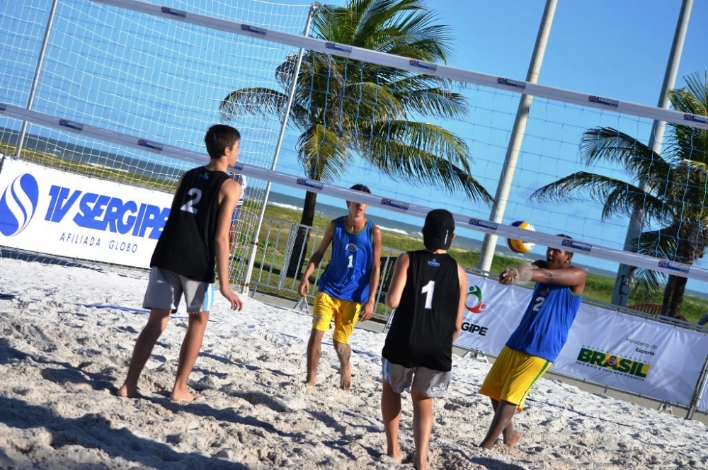 As duplas masculinas brasileiras conseguiram mais duas vitórias em quatro partidas pelo Mundial Escolar de Vôlei de Praia realizado em Aracaju. Na segunda parte da tabela desta terça-feira, 16, à tarde, o Brasil B da categoria 15-16 anos bateu a França por 2 sets a 0 – parciais de 21-6 e 21-6. Logo em seguida, o Brasil A da categoria 15-16 venceu a Argentina por 2 sets a 0 – parciais de 21-13 e 22-20.
