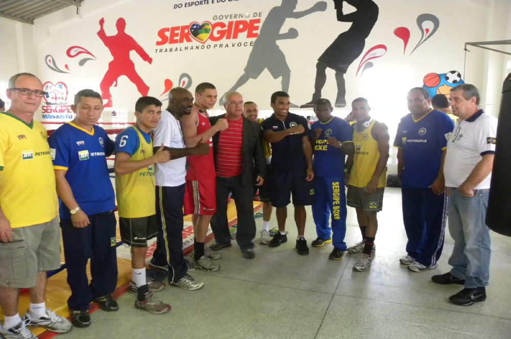 Os sete atletas da Seleção Brasileira de Boxe, que representarão o Brasil nos Jogos Olímpicos de Londres no próximo mês, visitaram, na manhã desta quarta-feira, 13, a Escola de Esportes Professor Kardec, localizada no bairro Santa Maria. Os atletas, Everton Lopes, Esquiva Florentino, Robson Conceição, Julião Neto, Robenilson Jesus, Myke Carvalho e Yamaguchi Florentino, estão na capital sergipana para participar do Campeonato Brasileiro de Boxe.