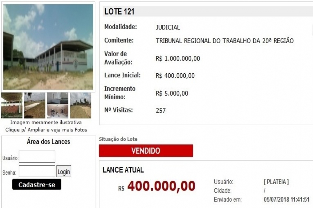 | Local foi arrematado por R$ 400 mil (Foto: reprodução) |