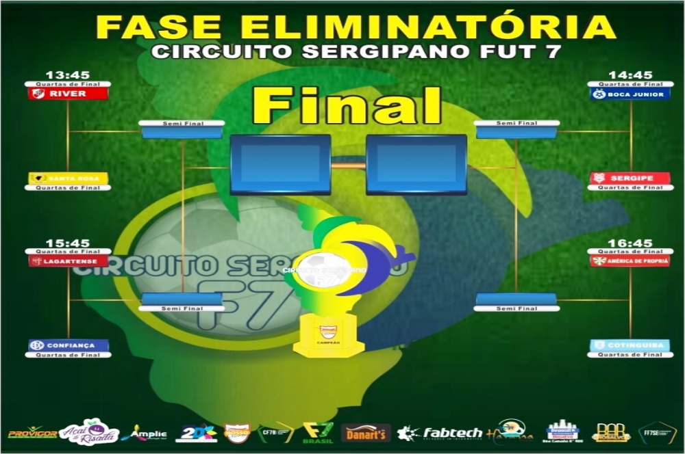 O primeiro confronto será River Plate x Santa Rosa de Lima. Em seguida, às 14h45, Boca Júnior x Sergipe. Às 15h45, Lagartense x Confiança e às 16h45, América x Cotinguiba. Os jogos únicos definem os quatro semifinalistas do torneio.