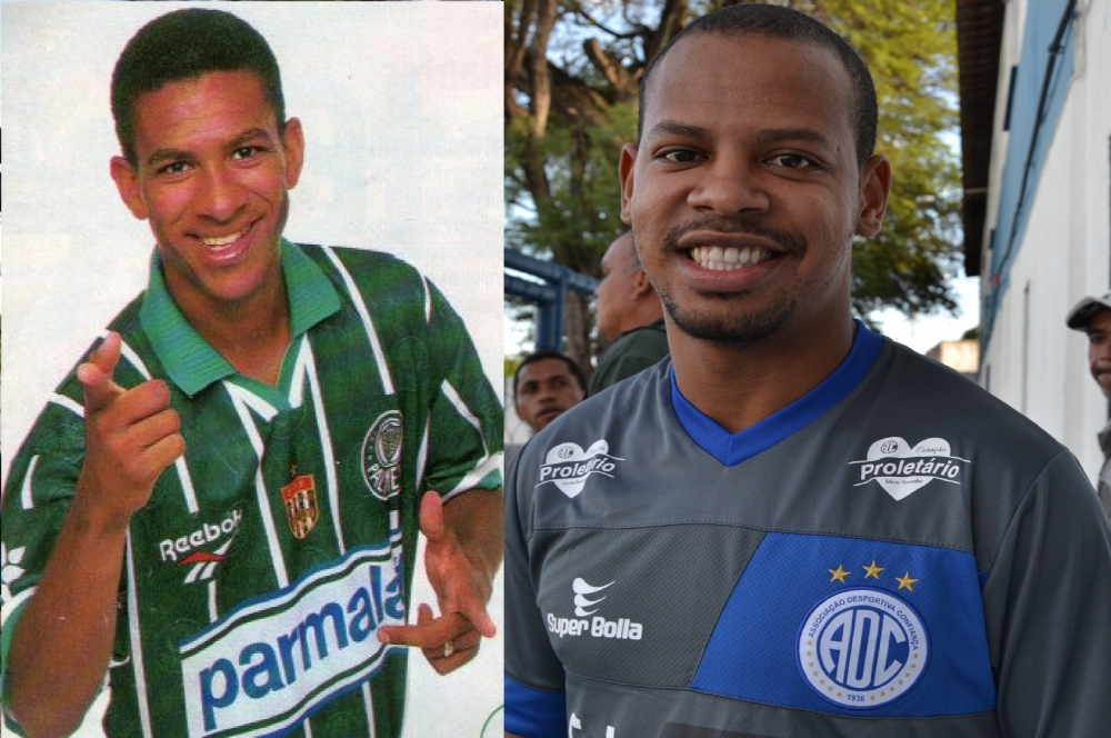 | Se parecem mesmo? 'Djalminha' original, e o genérico (Foto da esquerda: Reprodução/Palmeiras) |