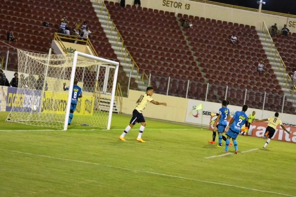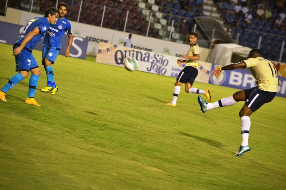 Nos primeiros minutos, o Confiança não deixou o Remo tocar na bola. Mas só foi o time paraense pegar na redonda que o estrago começou. Logo aos 10 minutos, Levy recebeu no lado direito e arriscou de longe. A bola tocou na zaga azulina, tirou o goleiro Beliatto do lance e entrou: Remo 1 a 0.