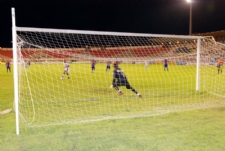 Pênalti perdido de Cristiano Alagoano (Foto: Filippe Araújo)