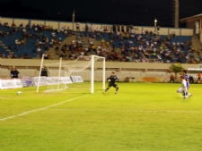 Pênalti perdido de Cristiano Alagoano (Foto: Filippe Araújo)