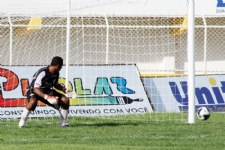 Goleiro do América não segura bola chutada por Cristiano Alagoano