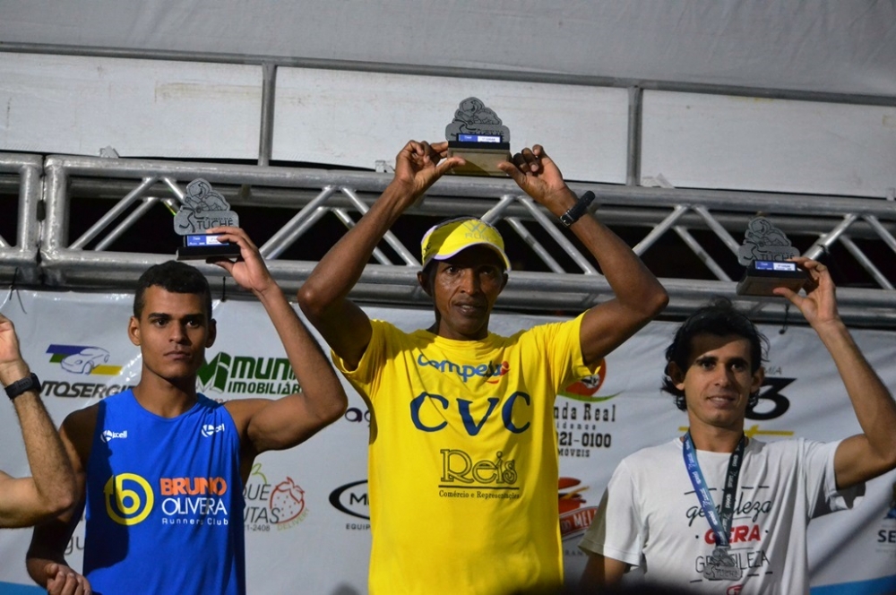 | Agostinho dos Santos (centro) foi campeão dos 5km masculino |