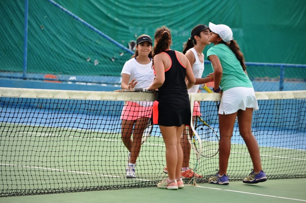 | Finalistas da categoria 14 anos se cumprimentam: Gabi – de verde – e Laura campeãs (Fotos: Igor Matheus/ Portal Infonet) |