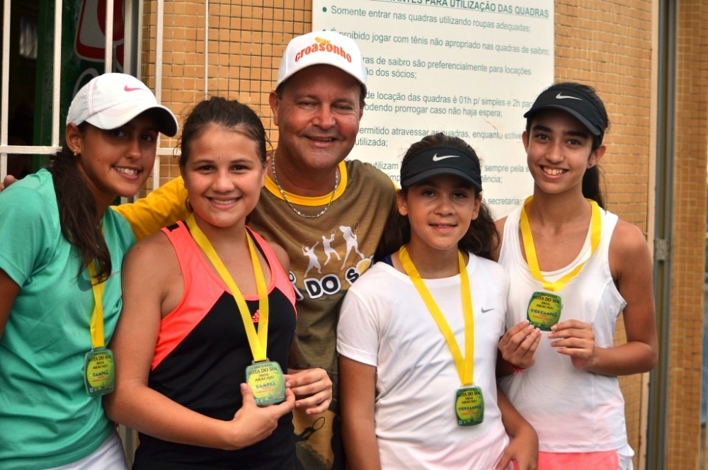 | Campeãs da categoria 14 anos com Augsuto Maynard, organizador do evento |