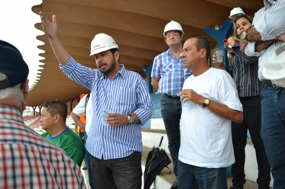 Na manhã desta terça-feira, 05, o secretário visitou as obras do estádio. O objetivo da visita foi buscar sugestões de melhorias técnicas nas partes elétrica e de lógica das cabines de rádio, televisão e os demais espaços destinados à imprensa em geral. “Já houve a primeira etapa da obras, onde conseguimos em tempo hábil, que a drenagem do campo fosse feita. Como podemos ver, mesmo diante da forte chuva, não houve acúmulo de água no campo”, comemorou Barbosa.
