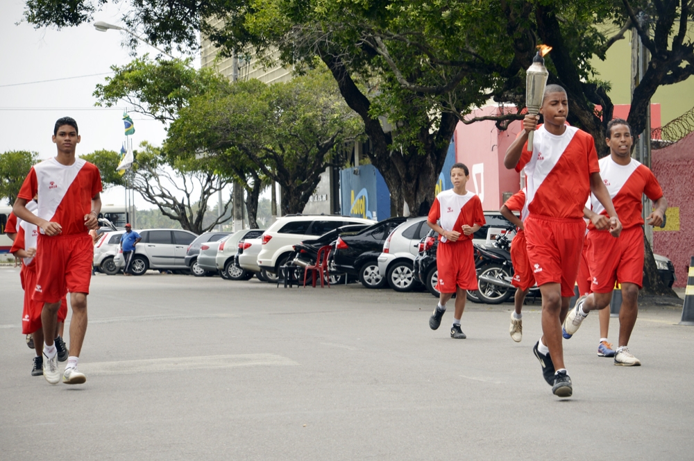 Coube ao estudante Rafael Santos, vencedor do ouro no lançamento de dardo, iniciar o percurso com a tocha. O jovem ficou honrado com a missão. "É uma honra homenagear meu estado e meu país. Esse momento ficará marcado para sempre em minha vida. Levarei essa alegria e garra para o Rio Grande do Norte com o intuito de fazer bonito nas competições e ter outro momento de glória como este", afirmou Rafael. A corrida seguiu ao longo da travessa José de Faro, praça Olímpio Campos, travessa Benjamin Constant, retornando à praça Fausto Cardoso.