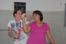 Estimular a coordenação motora e a circulação sanguínea são alguns dos benefícios da dança de salão. Além disso, é um exercício bom para os ossos e para o cérebro. As partes do corpo mais exigidas na dança são: o pé, tornozelo, joelho e coluna. “A dança é uma atividade física, mas acima de tudo é uma diversão. Tem que ser feita por prazer”, afirma o professor de dança Gladston Santos. Lígia (direita) ao lado da professora: dança para vençer as dores