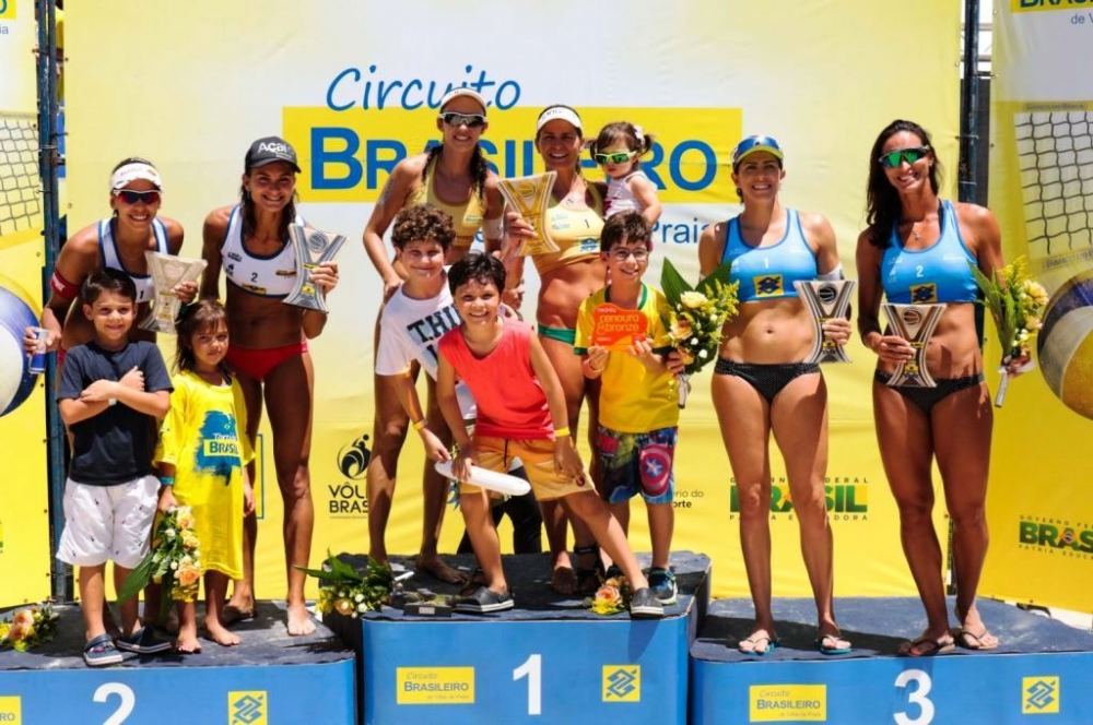 | Duda e Elize; Talita e Larissa; Ângela e Rachel: pódio em Fortaleza (Foto: CBV) |