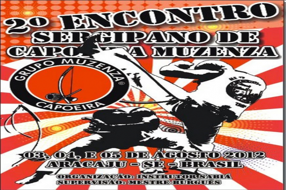 No mês de agosto ocorrerá o 2º Encontro Sergipano de Capoeira Muzenza. O evento terá início no dia 3 com Roda de capoeira na Orla de Atalaia às 19h30. Mais informações por meio do wesleysabia@yahoo.com.br.