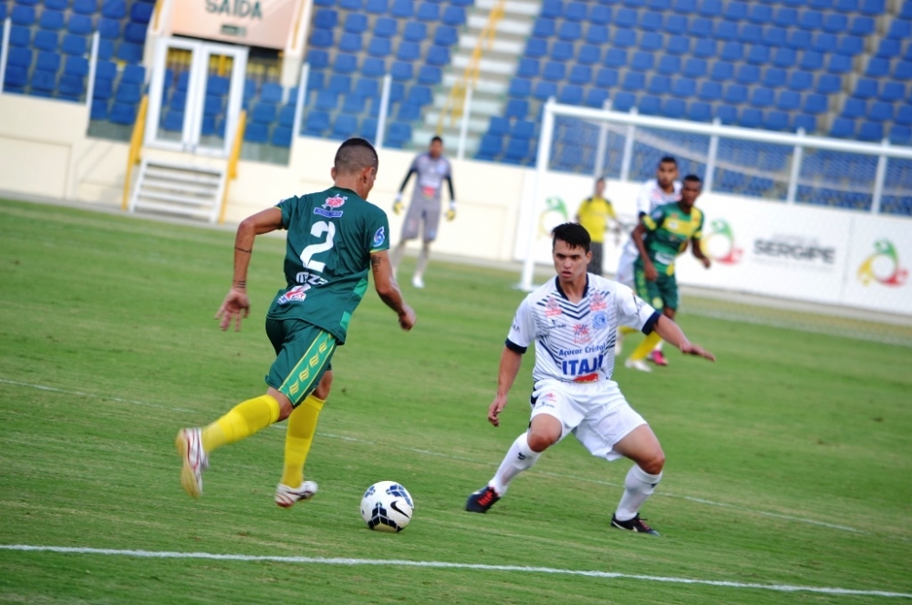 | Daniel carrega a bola: Estanciano maltratou Goianésia no Batistão (fotos: Igor Matheus/ Portal Infonet) |