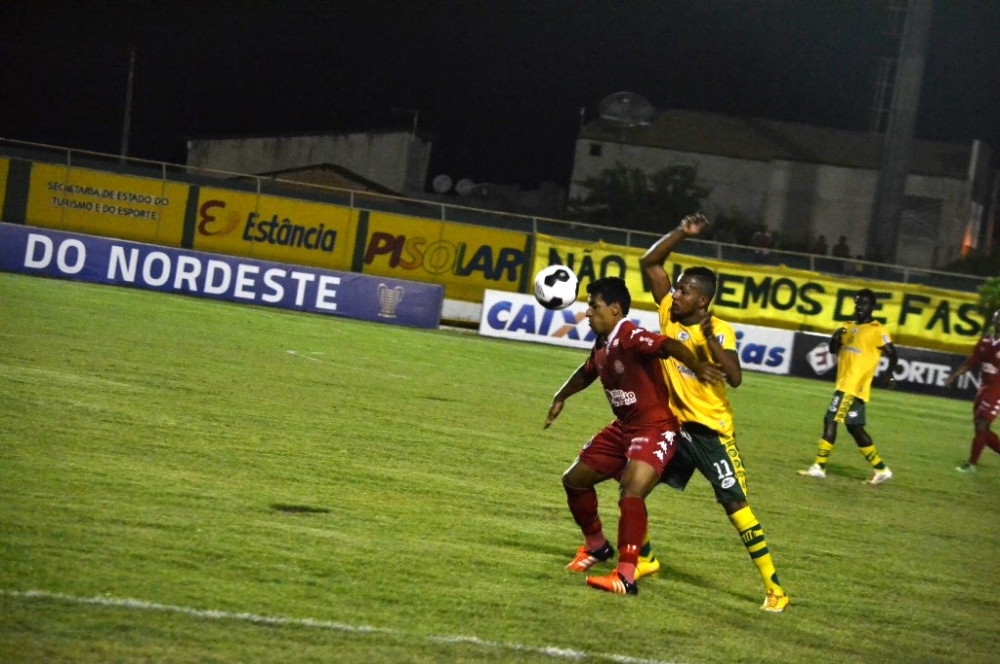 No começo da partida, o público era muito ruim no estádio Francão. Mas isso não pareceu afetar o ânimo do time anfitrião. Logo aos seis minutos, o Estanciano mostrou ânimo e Rony quase abriu o placar – se não fosse a intervenção da zaga rubra. Aos 16, em lance ainda mais perigoso, Cosme Sergipano recebeu na entrada da área e mandou uma bomba, mas a zaga apareceu no meio da trajetória.