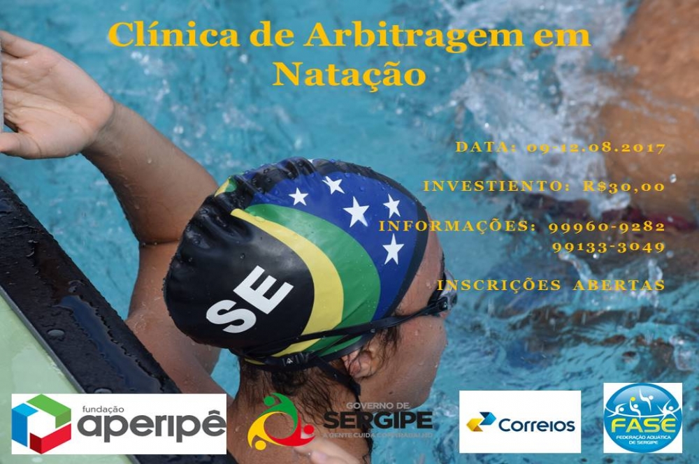A Federação Aquática de Sergipe (FASE) vai realizar clínica para formação de novos árbitros de natação entre os dias 9 e 12 de agosto, no auditório da Fundação Aperipê. O curso se resume no estudo das regras da natação, definidas pela Federação Internacional de Natação (FINA), análise e interpretação de vídeos da modalidade, além da etapa prática, mediante instrução da diretoria de arbitragem.