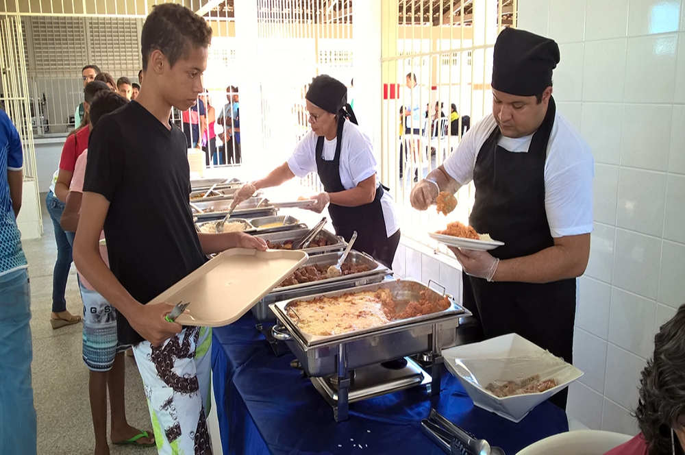 Para recarregar as energias após se dedicarem às competições esportivas dos XXXIII Jogos da Primavera durante as manhãs, centenas de crianças e jovens da capital e, principalmente, do interior do Estado, se dirigem ao refeitório do Colégio Estadual Professora Ofenísia Freire, em Aracaju.