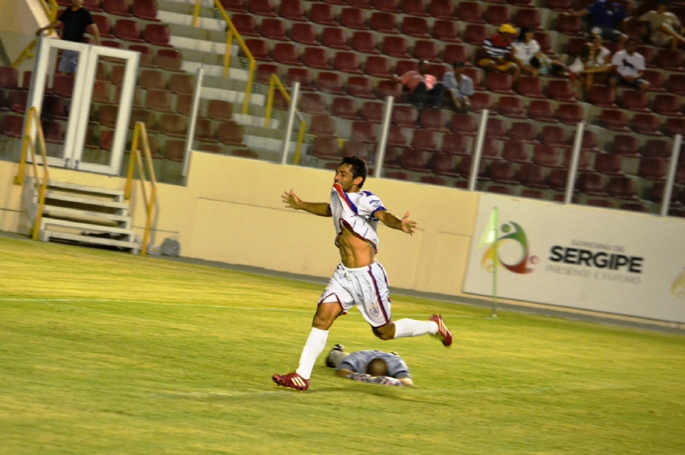 | Fabiano festejado: Itabaiana 1 a 0 (fotos: Igor Matheus/ Portal Infonet) |